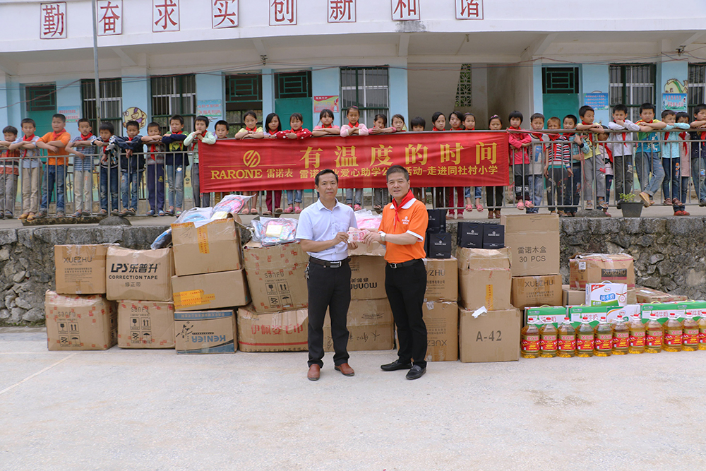 雷諾表愛心小組帶著滿滿的社會(huì)責(zé)任感走進(jìn)同社村小學(xué),詹總表示這并不是雷諾表第一次參與愛心公益活動(dòng),雷諾表的每一次愛心行動(dòng)只是拋磚引玉,希望能夠影響更多的人去關(guān)注公益事業(yè),人人貢獻(xiàn)一點(diǎn)愛,這個(gè)世界會(huì)更精彩。更何況與駐守大山的老師相比,我們的愛心助學(xué)行動(dòng)做得遠(yuǎn)遠(yuǎn)不夠,我們更應(yīng)該向這些默默無聞的教育工作者學(xué)習(xí)。雷諾表為同社村小學(xué)的每一位老師送上雷諾手表,用有溫度的時(shí)間和老師們一起陪伴孩子們的成長。