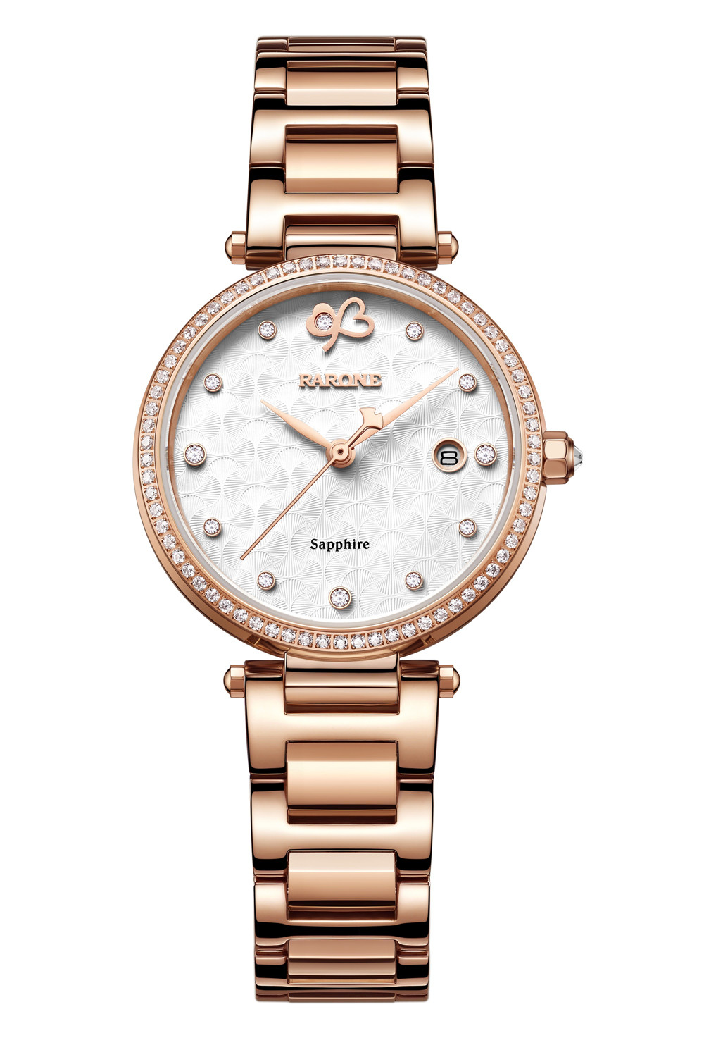 女神董潔優(yōu)雅、內(nèi)斂沉靜的氣質(zhì)與新品銀杏款不謀而合,銀杏沒有花朵,僅僅因為葉子的春秋兩季的美態(tài)傾倒眾生。雷諾表夜色系列銀杏款以銀杏葉作為設(shè)計元素,演繹分秒更替的時光軌跡。浪漫銀杏葉裝飾秒針的頭部,銀杏葉心形的輪廓和絲狀的肌理鋪滿表盤,12點位以兩片銀杏葉交織在一起,寓意兩顆相愛的心交融在一起。在腕表底蓋上,一對愛人依偎而坐,意義雋永悠長,表達永恒之愛的主題。