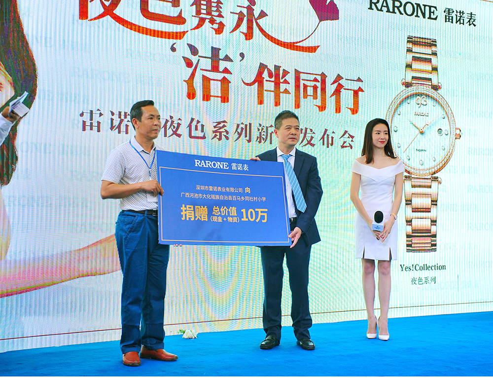 女神表示自己也非常喜歡這款新品傳達的永恒主題,表款的設(shè)計也很有意思,會是當(dāng)下都市女性青睞的腕間配飾。值得一提的是,一直熱心公益事業(yè)的雷諾表,在本次發(fā)布會上邀請董潔一同見證品牌方為廣西河池市大化瑤族自治縣百馬鄉(xiāng)同社村小學(xué)開展的愛心助學(xué)捐贈,在當(dāng)?shù)孛襟w以及明星董潔的見證下,雷諾表為貧困小學(xué)捐贈10萬愛心物資及義款,用有溫度的時間將一顆顆愛心傳遞,溫暖每一個需要幫助的孩子。