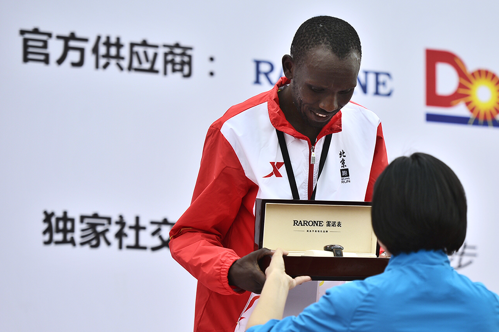值得一提的是, 81歲高齡的跑友湯伯成今年繼續和年輕人一起從天安門廣場起跑,體育賽事的魅力不言而喻。比賽結束,來自肯尼亞的Philip Kimaiyo以1時11分22秒的成績獲得北京半程馬拉松男子組冠軍,中國選手沈斌、代光臣分別以1小時12分33秒和1小時12分38秒獲得男子組亞軍、季軍。