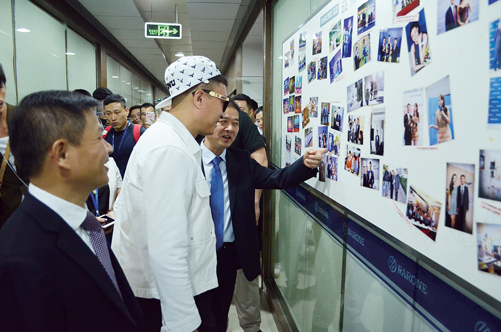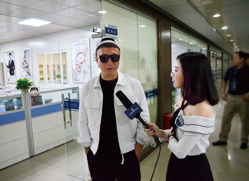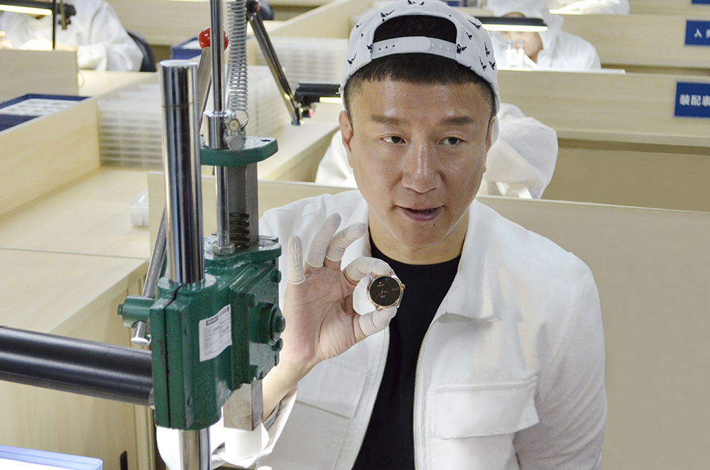 直播當天,孫紅雷一身帥氣、時尚休閑裝,和秋高氣爽的深圳十分搭配。雷雷作為雷諾家人,對手表的設計文化以及工藝興趣濃厚,在雷諾表董事長詹西洲先生、總經理詹江洲先生及總經理詹省洲先生一行的帶領下,參觀了雷諾表的設計研發中心和制造中心,調皮的孫漂亮在雷諾表設計手稿寫下“洪荒之力”四字,并在無塵裝配車間為即將贈送給粉絲的情侶腕表合上后蓋。在體驗了如此精密的手表裝配工作后帥雷雷直呼過癮!看得出孫紅雷這次為粉絲圓夢可謂做足功夫,誠意滿滿!