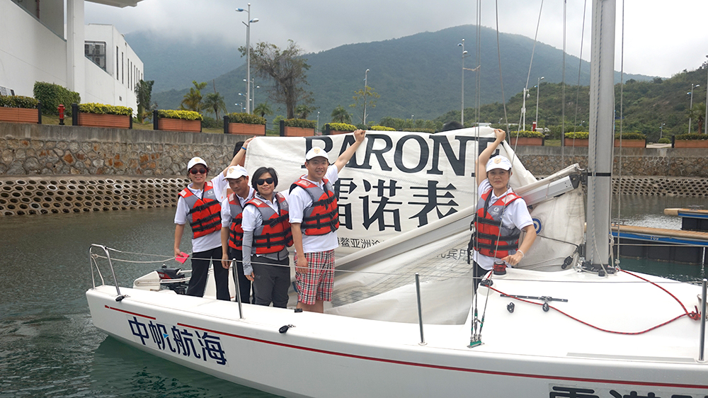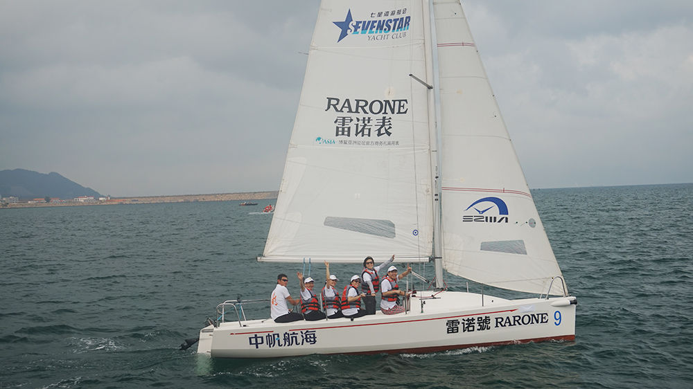 下午,海面迎來微涼的海風(fēng),令人心情開朗。開闊的海面,清綠的海水,飽滿的士氣,雷諾團(tuán)隊(duì)揚(yáng)起專屬雷諾表的“雷諾號(hào)”帆船。雷諾表董事長(zhǎng)詹西洲先生親自率領(lǐng)雷諾團(tuán)隊(duì)一同登上“雷諾號(hào)”,在海面上開始了與其他深圳鐘表品牌的帆船友誼賽。