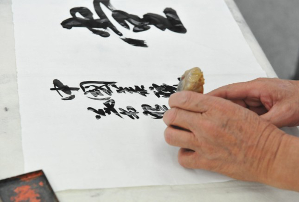 此次來(lái)訪的藝術(shù)家們?nèi)闉槔字Z表,揮毫潑墨,各自書寫珍貴的題詞和作品,藝術(shù)家們對(duì)藝術(shù)的尊重和熱愛,讓人心生敬意。